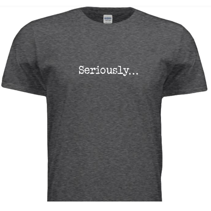 Reads "Seriously..." on front of shirt.